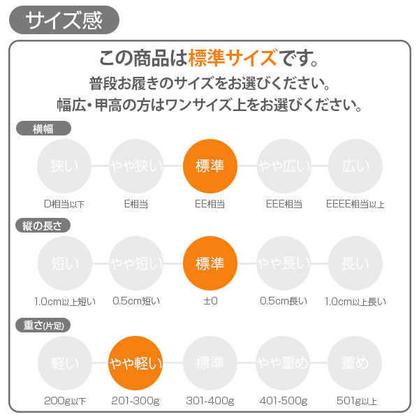 | こちらの商品は【標準サイズ】です。普段お履きのサイズをお選び下さい。 |