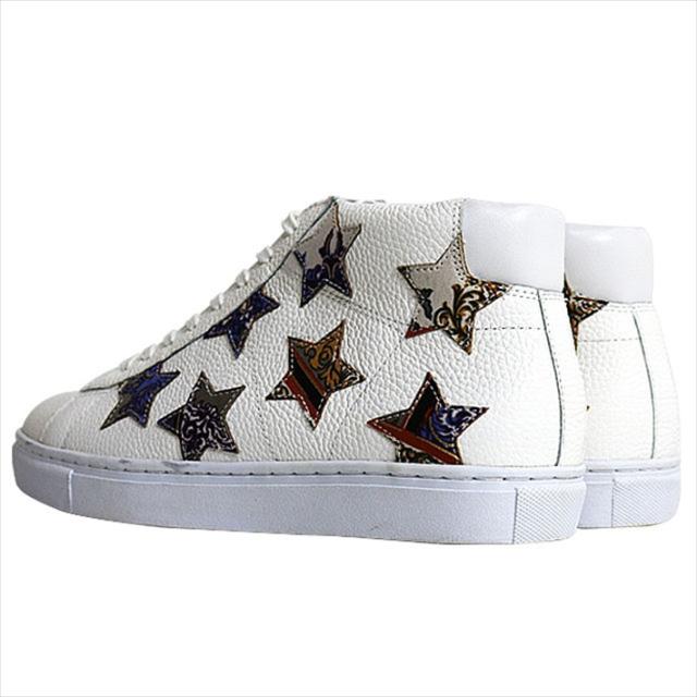 スニーカー メンズ ブランド 本革 レザー シューズ 靴 メンズ Honour Ovation アナーオベーション ホワイト 白 3070 RE Y_KO ≪ Honour Ovation / アナーオベーション≫ 「名誉と喝采」を意味するブランドネーム「Honour Ovation」。 名古屋発のシューズブランドとして2014年にスタート。立ち上げ間もない新鋭ながら、デビュー間もなく目利きのスタイリストや高感度の芸能人・ミュージシャン(ex.向井理氏/LUNA SEA SUGIZO氏・INORAN氏/SOPHIA 松岡充氏/シド マオ氏 他多数) の個人買いが後を絶ちません。 その魅力は、デザイン性の高い華やかな外観だけではなく、シューズ製造のノウハウを活かした確かなクオリティと圧倒的なコストパフォーマンスにあります。 業界内でも今最も熱い注目を集めている、短靴のスペシャリストブランドです。 ■カラー ホワイト/パープルパターン ※カラーは各々のモニターにより、多少の違いがある事、ご了承下さいませ。 ■サイズ(単位:cm) 38(24.5〜25.0) 39(25.5〜26.0) 40(26.5〜27.0) 41(27.5〜28.0) 42(28.5〜29.0) 43(29.5〜30.0) ※デザインや個人の足タイプで若干の違いはございます。あくまでも目安とお考え下さい。 ■素材 本革 ■特徴 ブランド立ち上げ間もない新鋭ながら、既に一流ミュージシャンや芸能人を虜にしている短靴専門ブランド「HONOUR OVATION(アナーオベーション)」。 "名誉と喝采"を意味するブランド名からうかがえる華やかな外観のみならず、シューズ製造のノウハウを活かした本格的な作りが魅力です。 本革レザーをアッパーに使用した、スター柄の超COOLなデザイン♪軽快な履き心地をアシストするしっかりとした製法に、イタリア車を彷彿とさせるパッションレッドのインソールが特徴。 デザイン性の高さと確かなクオリティ、圧倒的なコストパフォーマンスは「HONOUR OVATION(アナーオベーション)」だからこそ成せる技です。 [商品ご購入時のご注意] 天然皮革を使用する製品のほとんどが、天然皮革ならではの風合いを生かして作られているため、表面にキズ・色ムラ・シワがある場合がございます。 特性上、革の表面にはキズ・色ムラ・シワなどがございますが、良品となりますので予めご了承ください。 | ||