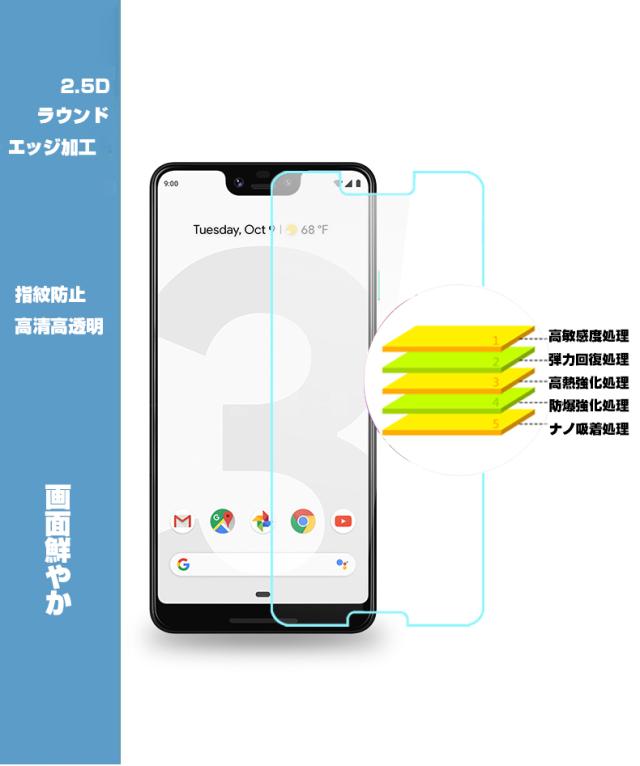 【2枚セット】Google Pixel 3 XL 液晶保護ガラスフィルム Google Pixel 3 XL 強化ガラス保護フィルム 強化ガラスフィルム Google