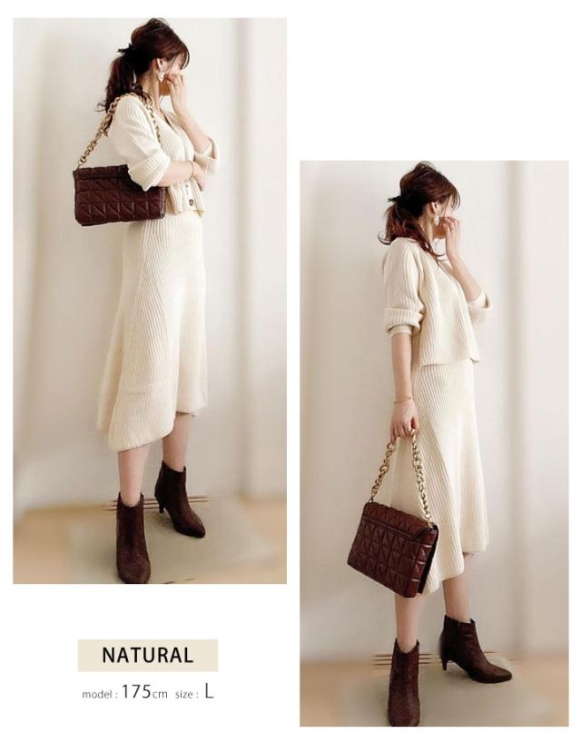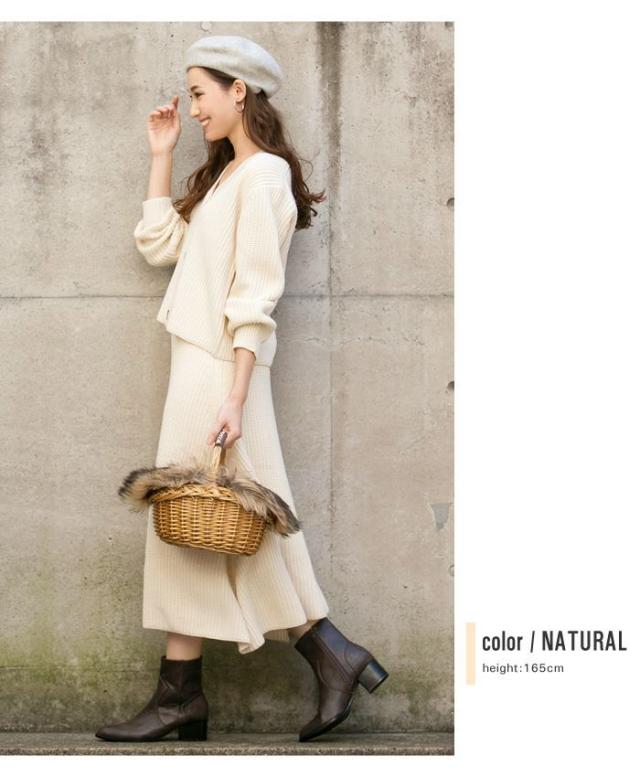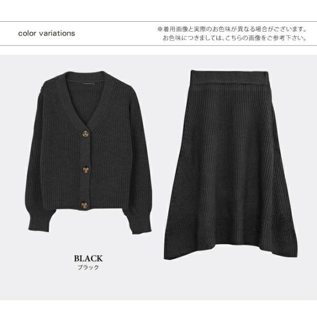 送料無料 あぜ編みニットアップ レディース ブラック ナチュラル グレー モカ トップス スカート Vネック