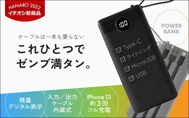 付属 : Type-Cケーブル(モバイルバッテリー本体の充電専用)