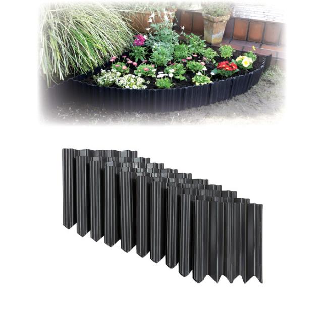 地面に直接打ち込むだけで花壇ができるストッパーセットです。今までの花壇作りには、レンガや杭などを工夫して作る必要があり、大変な作業でした。本製品は、そんな大がかりになってしまう花壇作りを、もっと手軽にできるグッズです。連結アレンジもしやすく、スキ間が出来ない構造ですので、芝の根止めにも活躍します。設置には、ゴムや木のハンマーで打ち込んでください。花壇を作る時は少し上げた感じで打ち込み、芝の仕切りとしては深く打ち込むと良いでしょう。また、花壇の中で、相性の悪い草花同士を仕切るのにもご使用ください。多少、曲げても使えるので、カーブを描く形での打ち込みも可能です。