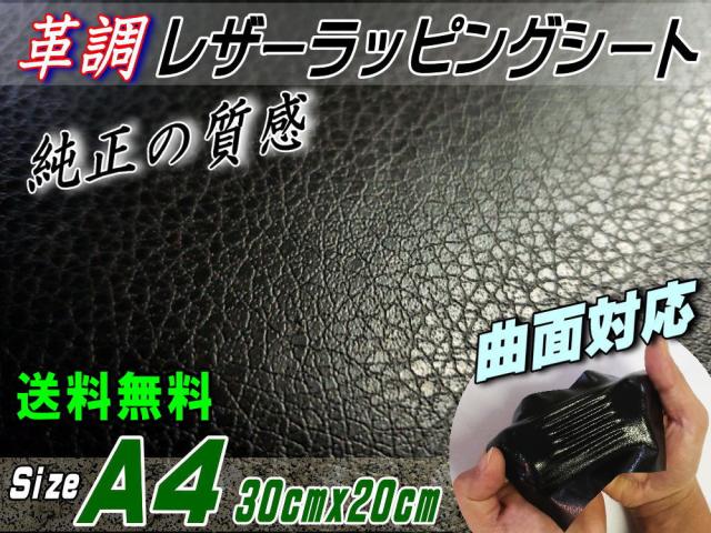 レザーシート 黒 (A4) 【メール便 送料無料】 幅30cm×20cm A4サイズ カーボディラッピングシート 革調ステッカー シボ加工 切り売り 純正の革張り内装のように カッティング可能シート 傷隠し ダイノックやサンゲツに負けない質感 デカール シール ラッピングフィルム ステカ