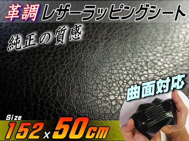 レザーシート 黒 (幅152cm×50cm) カーボディラッピングシート 革調ステッカー シボ加工 切り売り 純正の革張り内装のように カッティング可能シート 傷隠し ダイノックやサンゲツに負けない質感 デカール シール ラッピングフィルム ステカStika 対応