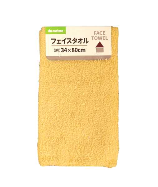 フェイスタオル イエロー 34×80cm (100円ショップ 100円均一 100均一 100均)