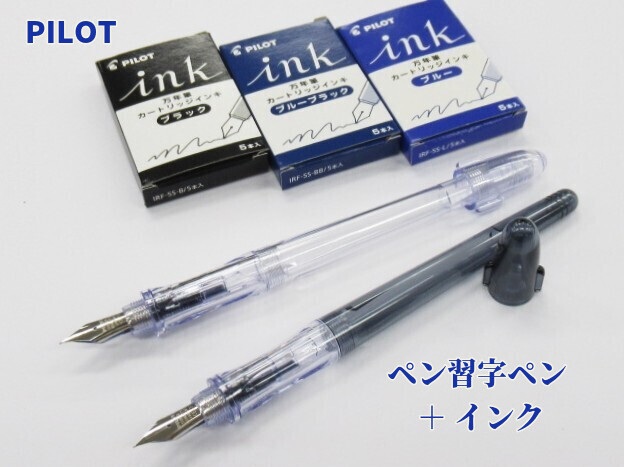 極細万年筆(ペン習字ペン)+カートリッジインク(5本入1箱)のセットです。