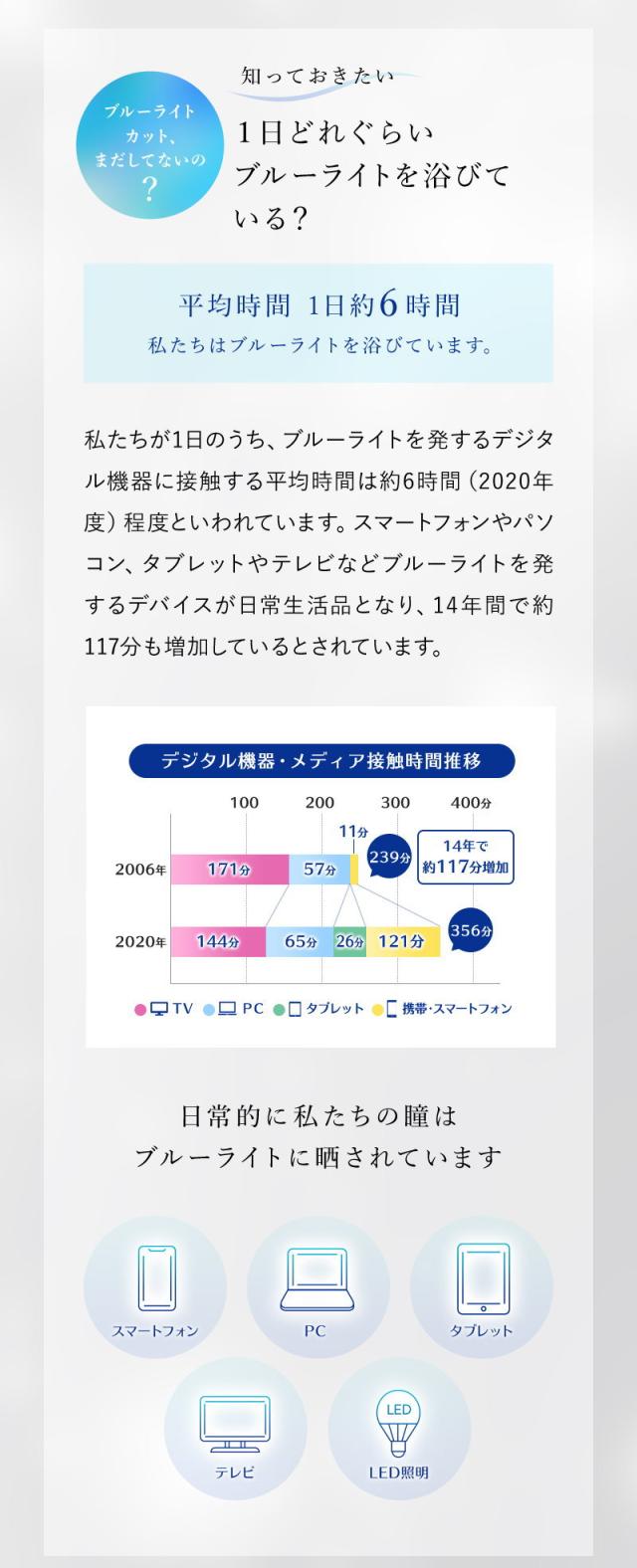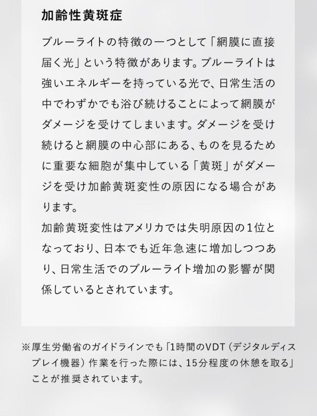 ・機能:ブルーライトカット(約15%)UVカット、うるおい成分MPCポリマー