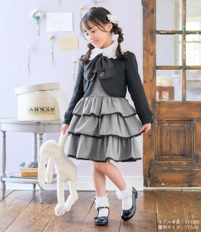 入学式 スーツ 女の子 卒園式 子供服 スーツ女の子 卒園 115 120 130 cm 3点セット ジャンパースカート ボレロ リボン キッズ フォーマル 入学式スーツ 子供スーツ アンサンブル 黒 ブラック 卒園式 エリー]