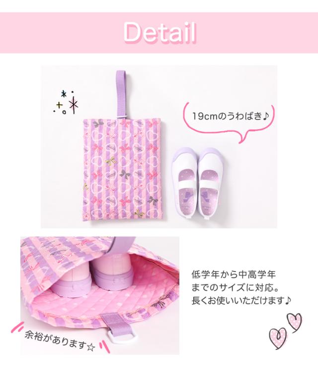 シューズバッグ 女の子 上履き入れ 小学校 サイズ 上履き袋 上靴入れ 上靴袋 子供 高学年 幼稚園 通園 通学 入学グッズ 小学生 メール便可 パープル ラベンダー ピンク ミント グリーン ブルー 水色 ネイビー