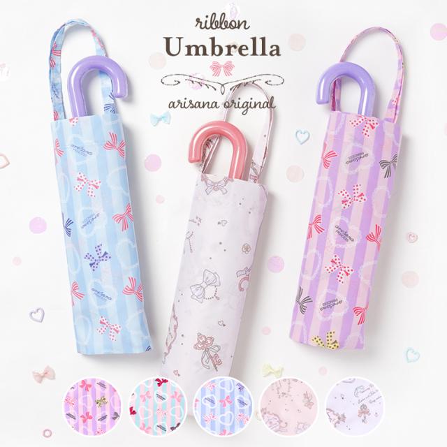 【アリサナオリジナル】リボン柄 折りたたみ傘