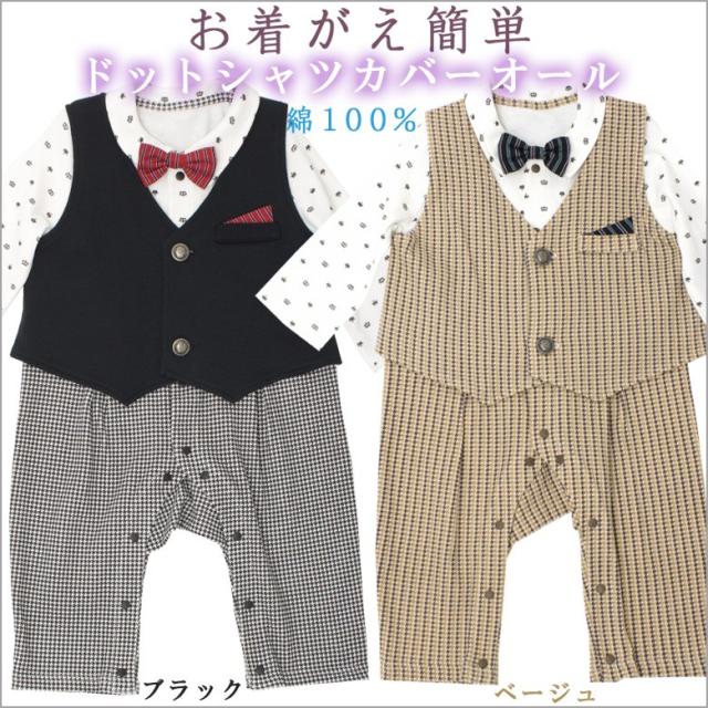 ドットシャツカバーオール 綿100% 70 80 結婚式 男の子 子供服 キッズ