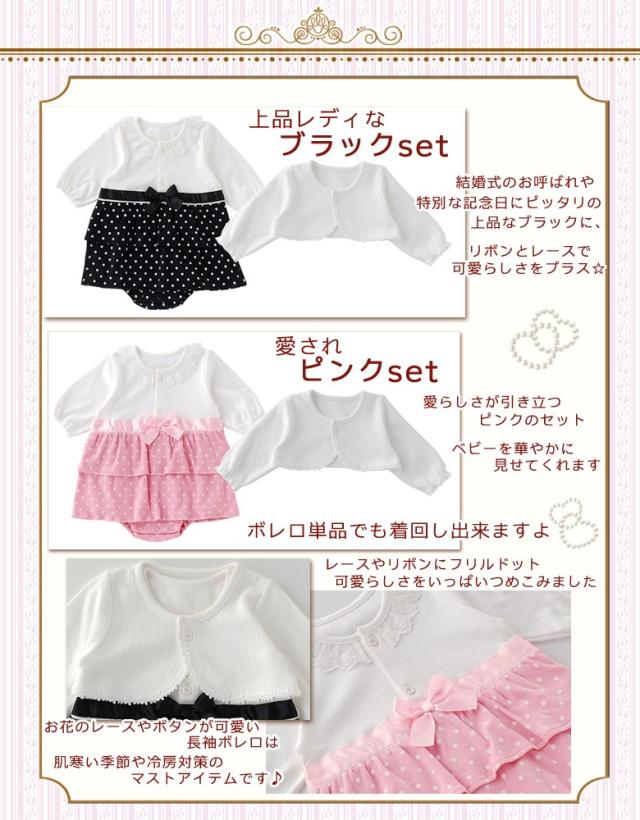 【メール便可】 ベビー フォーマル 女の子 ボレロ+ロンパース2点セット カバーオール arisana