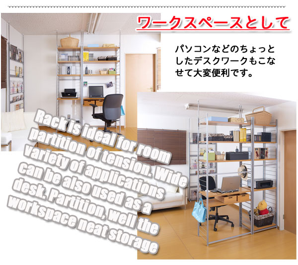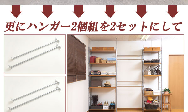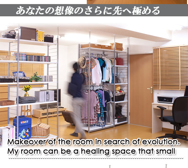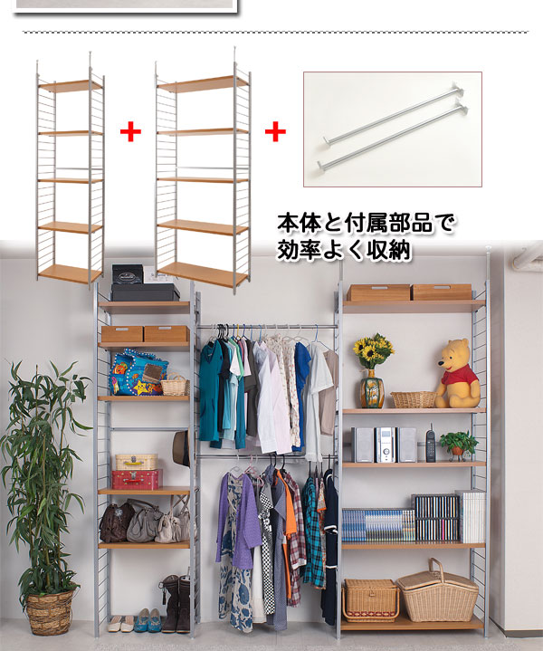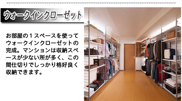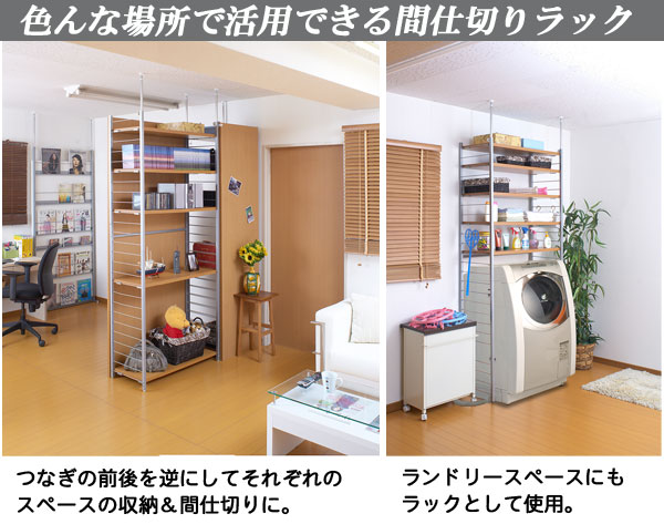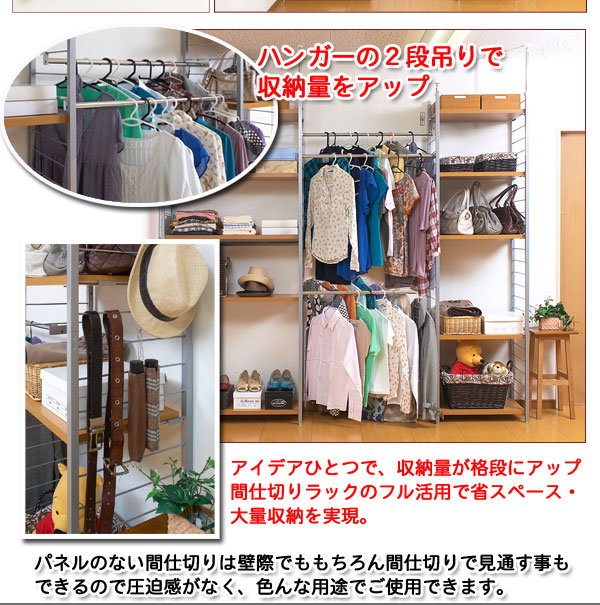 ■お部屋にメリハリをつける間仕切りシリーズは、アレンジ次第でオリジナル空間に変身!たっぷり収納できるラックと、ハンガーが付いた服吊で色んなパターンが完成。