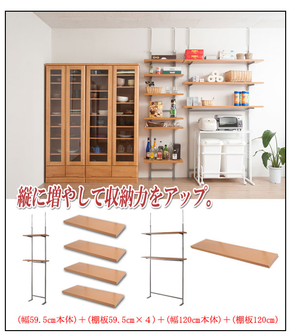 ■商品サイズ/本体:(約)幅59.5×奥行29×高さ210〜275cm、棚板:(約)幅59.5×奥行25cm