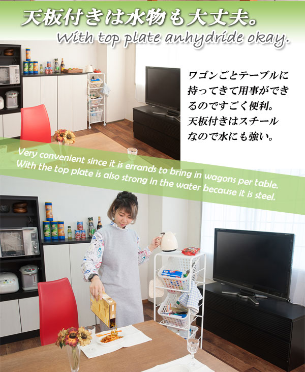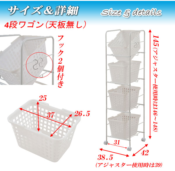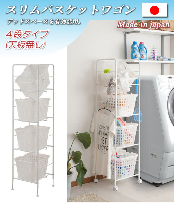 キャスター付きバスケットワゴン 4段天板無し ホワイト 脱衣所 収納 キャスター付 バスケット付 日本製(代引不可)【送料無料】