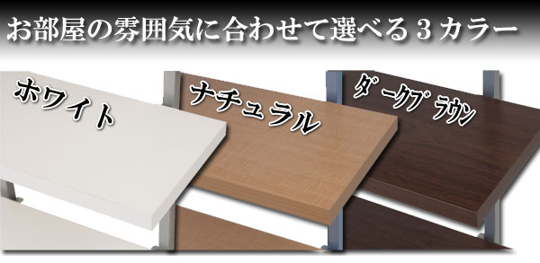 また置きたいものに合わせて高さを調節できるので、もう少し高ければなぁ…となることはなくなります!カラーはホワイト・ナチュラル・ダークブラウンの3色、サイズは60cm・90cm・120cmの3タイプがあります。