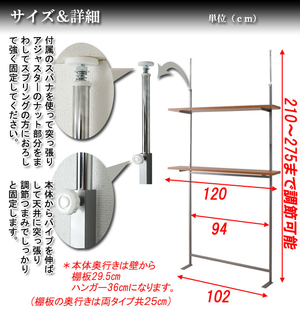 ■商品サイズ/本体:(約)幅59.5×奥行29×高さ210〜275cm、棚板:(約)幅59.5×奥行25cm