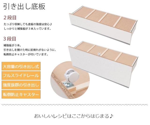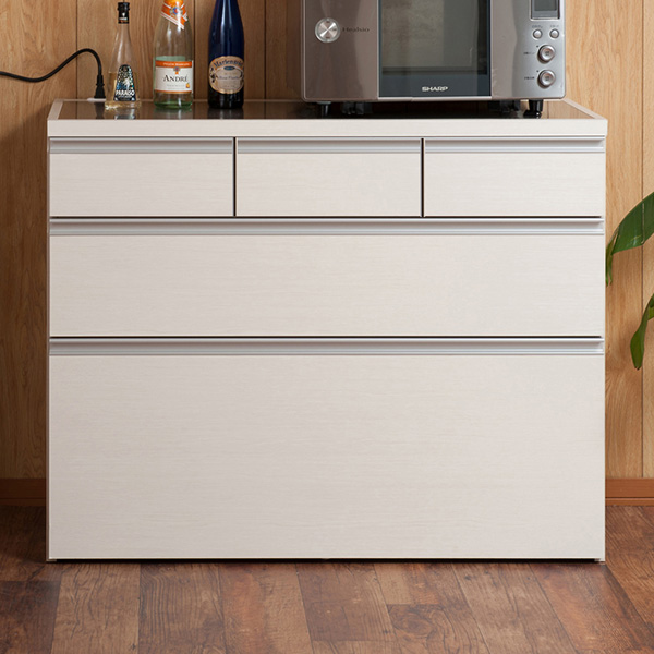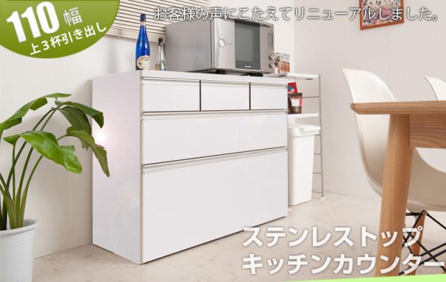 日本製 完成品 大川家具 ステンレス キッチン カウンタ— 幅110 大容量 食器棚 3段 収納 艶出しホワイト レンジ台 レンジラック おしゃれ 国産(代引不可)【送料無料】