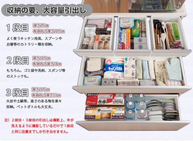 ■引出し内寸/(上)幅27.5×奥行32.5×深さ7.5〈有効11.5〉、幅100×奥行32.5×深さ(中)16.5〈有効19〉、(下)16.5〈有効33〉