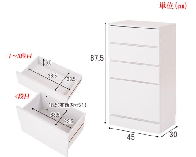 チェスト 幅45 省スペース ランドリー 収納 隙間収納 すきま収納 ラック おしゃれ 引き出し 45幅 四段 4段 白 ホワイト 大容量 北欧(代引不可)【送料無料】