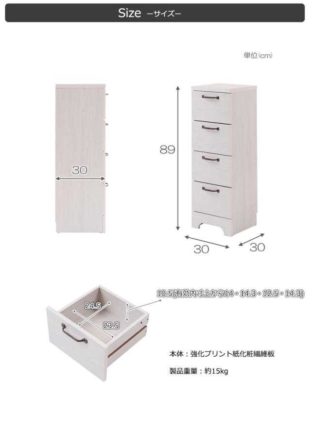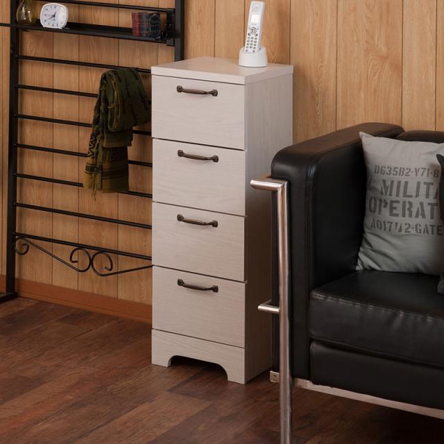 カウンター下 チェスト 幅30 四段 4段 カウンター ホワイト 白 スリム リビング 収納 引き出し 引出し おしゃれ アンティーク 北欧(代引不可)【送料無料】
