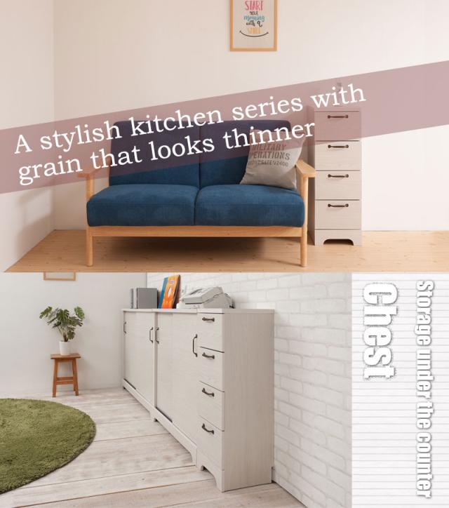 ■商品について/うっすら木目を生かしカントリーチックに仕上げたカウンター下シリーズ。