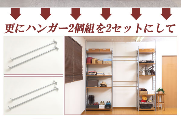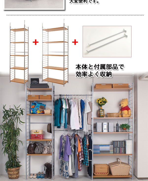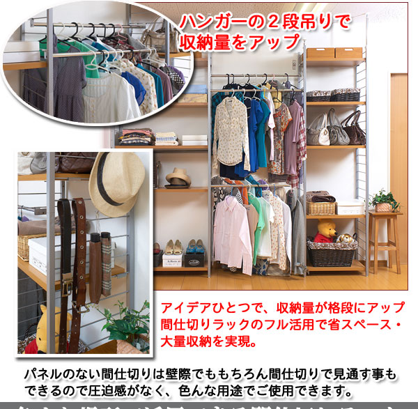 ■お部屋にメリハリをつける間仕切りシリーズは、アレンジ次第でオリジナル空間に変身!たっぷり収納できるラックと、ハンガーが付いた服吊で色んなパターンが完成。