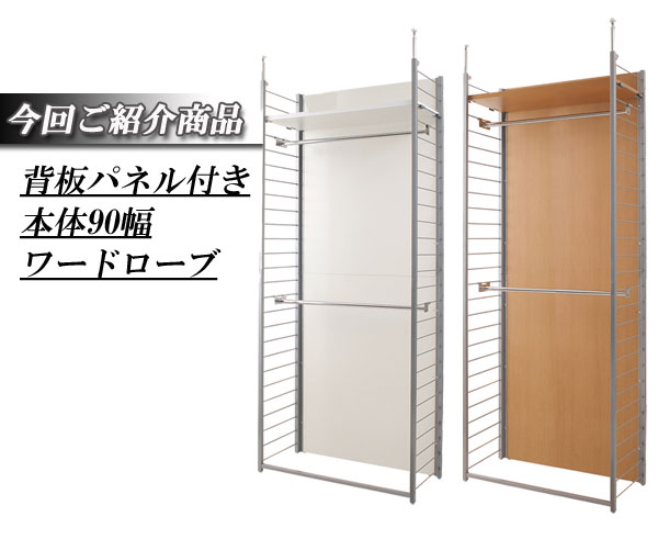 日本製 つっぱり 壁面 間仕切り ワードローブ 幅90 背板付き ホワイト 仕切り 突っ張り ハンガーラック オープンラック 国産 おしゃれ ワイド(代引不可)【送料無料】