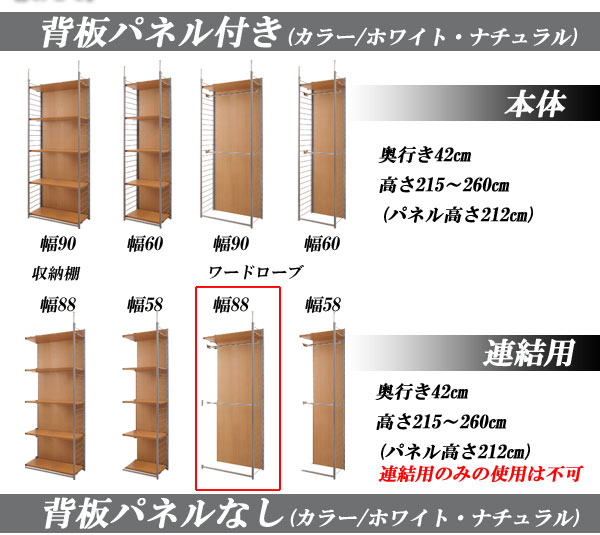 日本製 つっぱり 壁面 間仕切り ワードローブ 幅88 連結用 パネル タイプ ホワイト 白 突っ張り ラック つっぱりラック 国産 おしゃれ 北欧(代引不可)【送料無料】