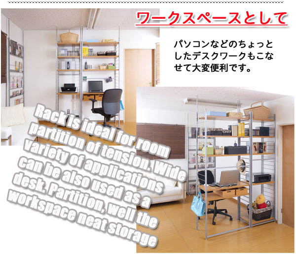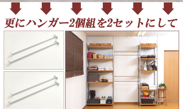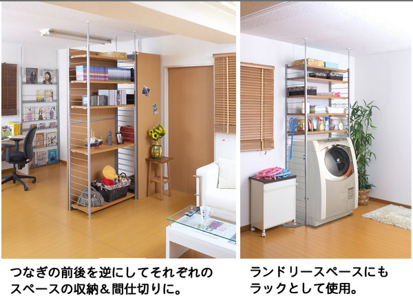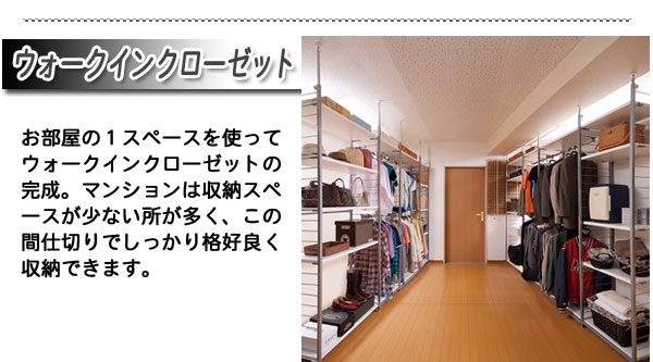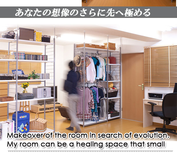 ■お部屋にメリハリをつける間仕切りシリーズは、アレンジ次第でオリジナル空間に変身!たっぷり収納できるラックと、ハンガーが付いた服吊で色んなパターンが完成。
