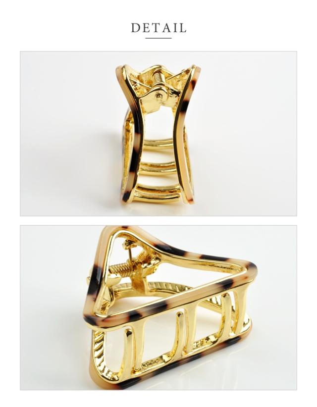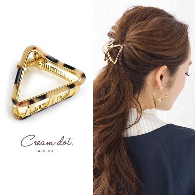 べっ甲風素材とゴールドの組み合わせが上品なバンスクリップに、三角形のフレームデザインで抜け感をプラスしました。