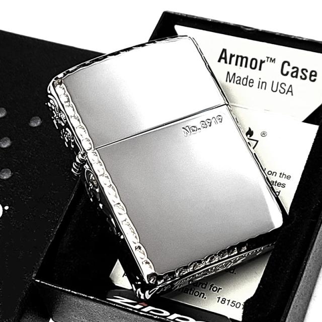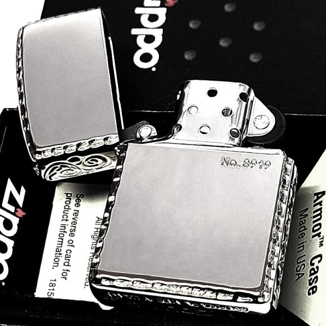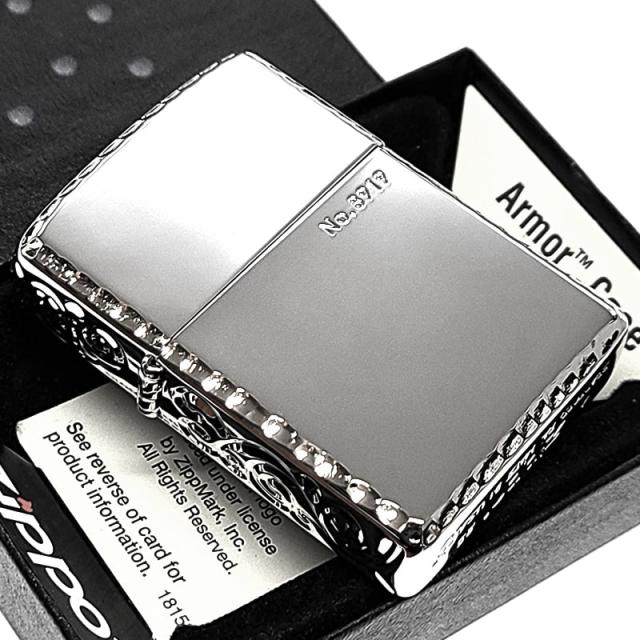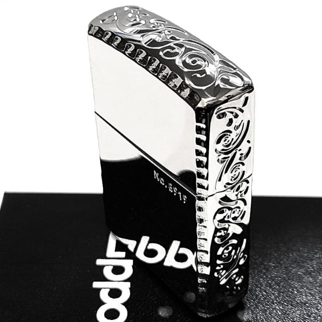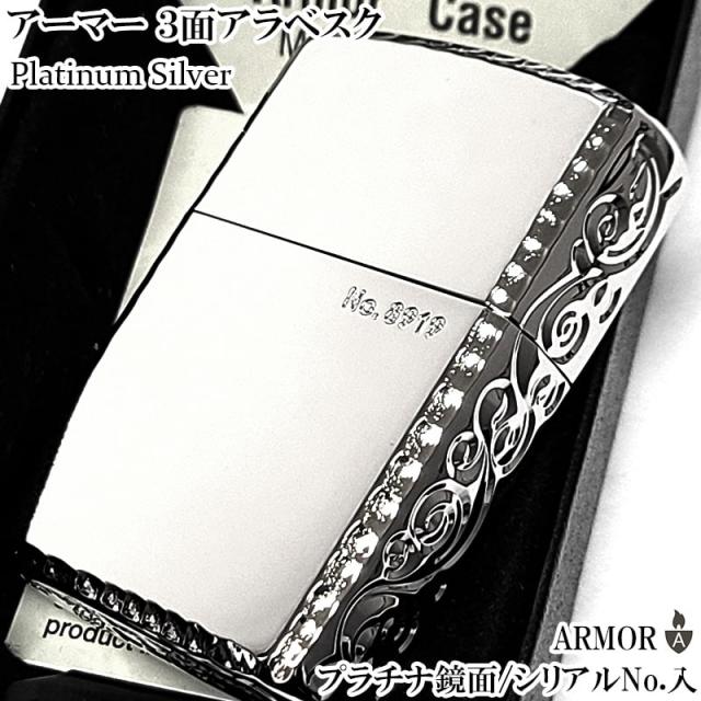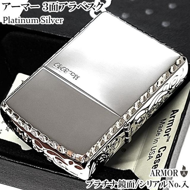 ZIPPO アーマー 限定 ジッポ ライター 3面彫刻 アラベスク 鏡面プラチナ シルバー シリアルNo刻印 コーナーリューター 重厚 かっこいい