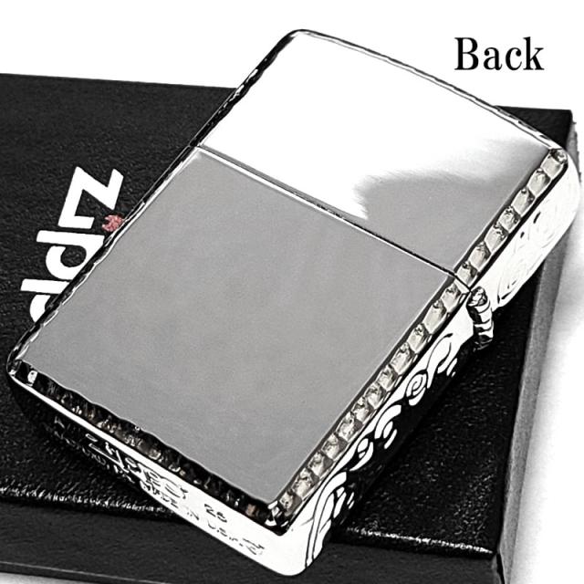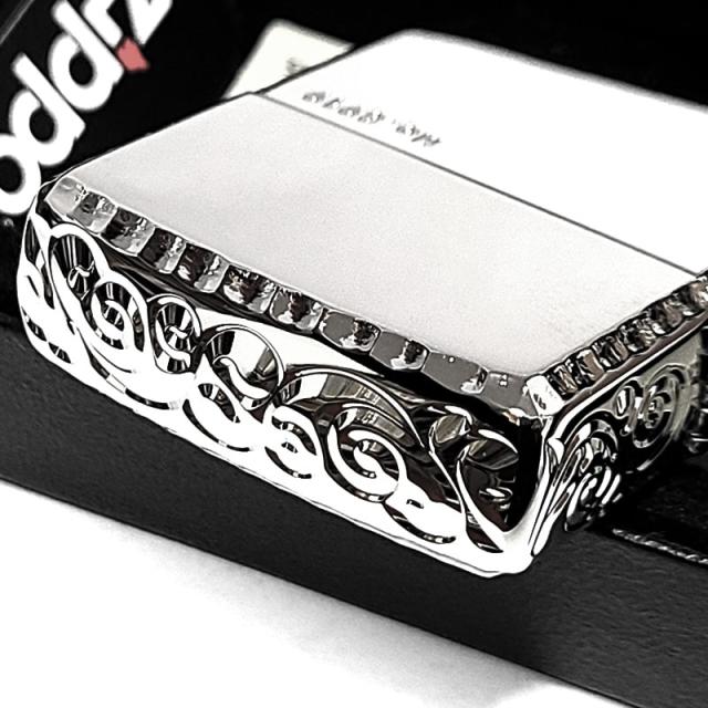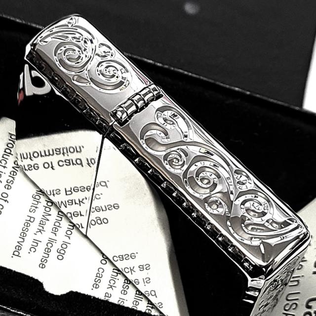 サイド、天面に繊細なアラベスク模様の彫刻デザインをあしらった、おしゃれで高級感あるZIPPOライター。