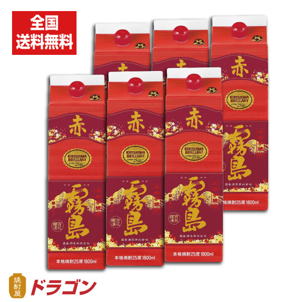 全国送料無料 赤霧島 芋焼酎 25度 1.8L×6本 パック 1800ml 1ケース あかきりしま