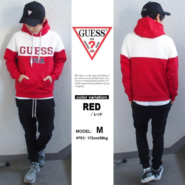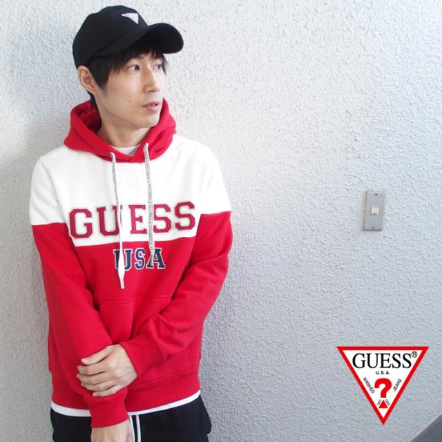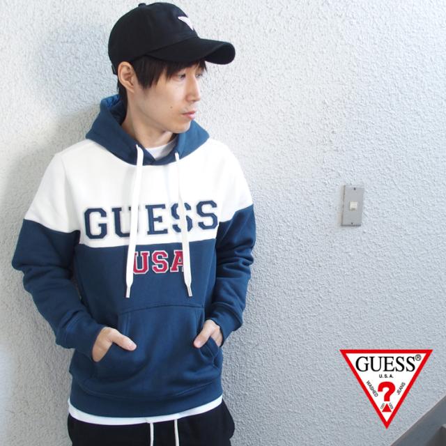 ゲス GUESS プルオーバー パーカー ツートーン カレッジ スウェット MI4K8527MI トライアングルロゴ メンズ レディース