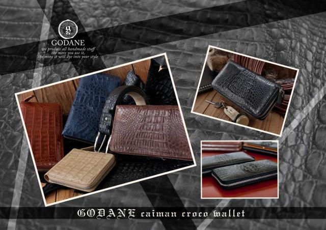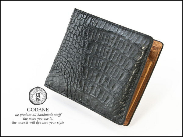 GODANE正規販売代理店 ゴダン レザーウォレット ミニ カイマン クロコダイル 短財布 折財布spcw8007cpbk ブラック 黒