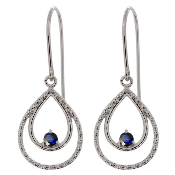 9月誕生石サファイアを使用したプラチナ製の、雫(しずく)モチーフフックピアス(アメリカンフック)です。