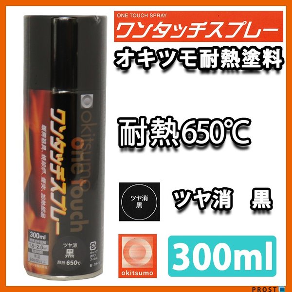 耐熱塗料 オキツモ ワンタッチスプレー 艶消し ブラック 300ml /650℃ 黒 塗料 バイク 車 焼却炉