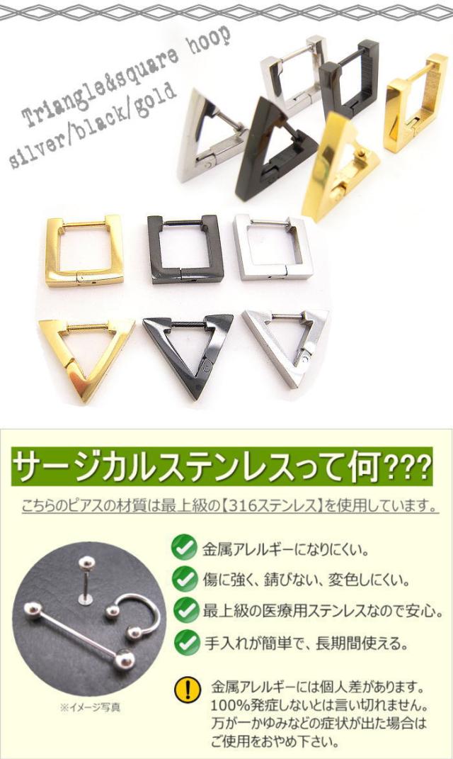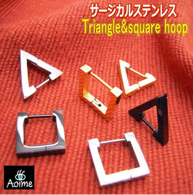 三角 四角 ピアス トライアングル スクエア リングピアス フープ 金属アレルギー 医療用 ステンレス 片耳用 1-122-