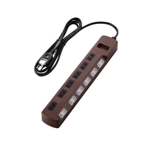 エレコム(ELECOM) T-BR04-2620BR ブラウン 雷ガードタップ 個別スイッチ付 延長コード 2ピン 6個口 2m