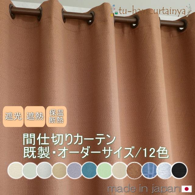 【送料無料】日本製 間仕切りカーテン ハト目カーテン 遮光 つっぱり式 断熱 目隠し 節電 シンプル無地12色【幅145cm×丈既製サイズ】1枚入り日本製
