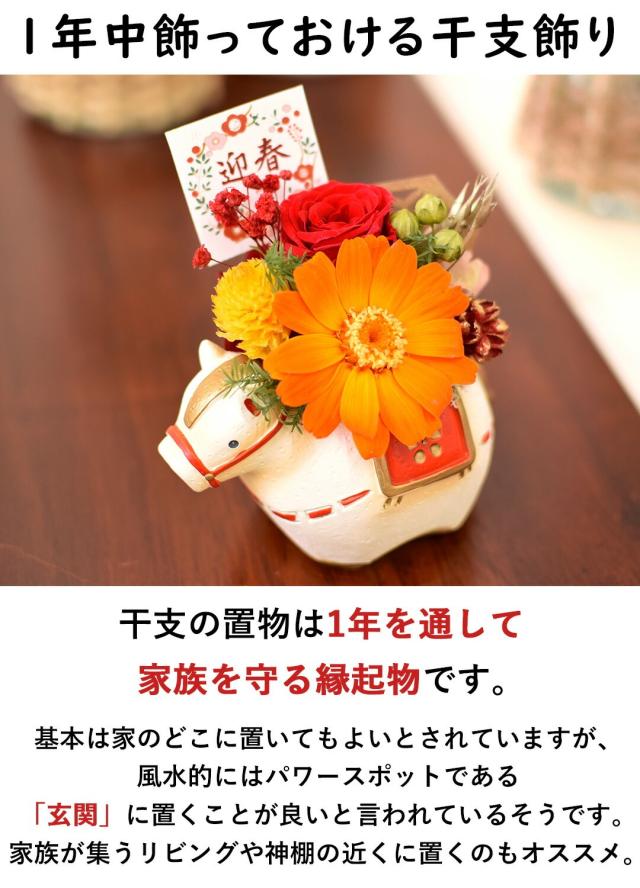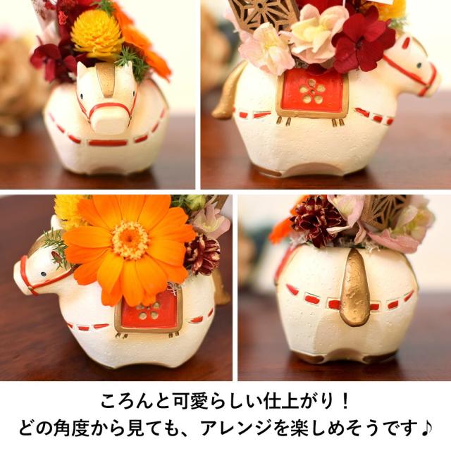 正月飾り 2026 プリザーブドフラワー 干支飾り 午 うま キャラクターポット お正月 花 玄関 正月 ミニ 置物 アレンジメント 迎春 午年 うま年 ウマ 干支 ブリザードフラワー お歳暮 お年賀 ギフト 送料無料 玄関用 テーブル 両親 家族 実家 祖母 12/15〜12/31の間で日時指定OK