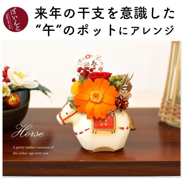 【送料無料】【迎春◎お正月プリザーブドフラワー】キャラクターポット 迎春飾り 午 うま【お正月】