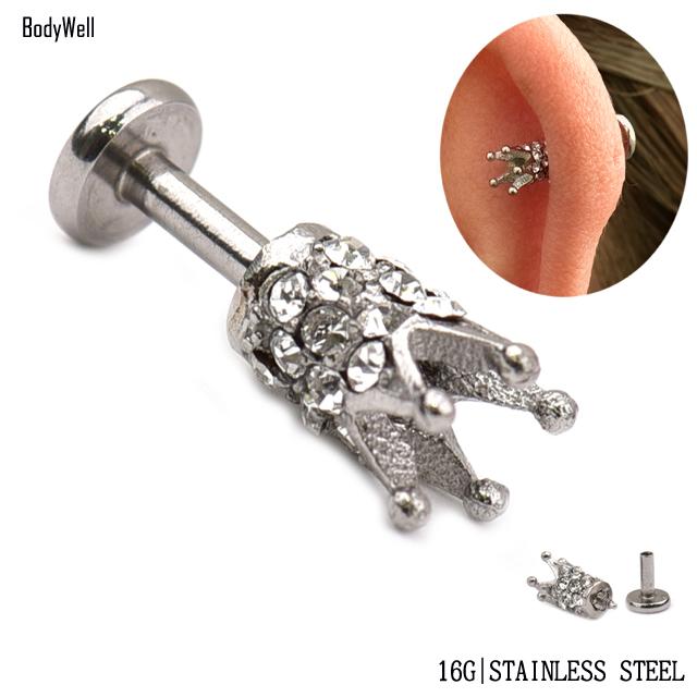 ボディピアス 16G 早いもの勝ち 王冠 インターナルラブレット ロブ へリックス インナーコンク 軟骨ピアス ステンレスピアス