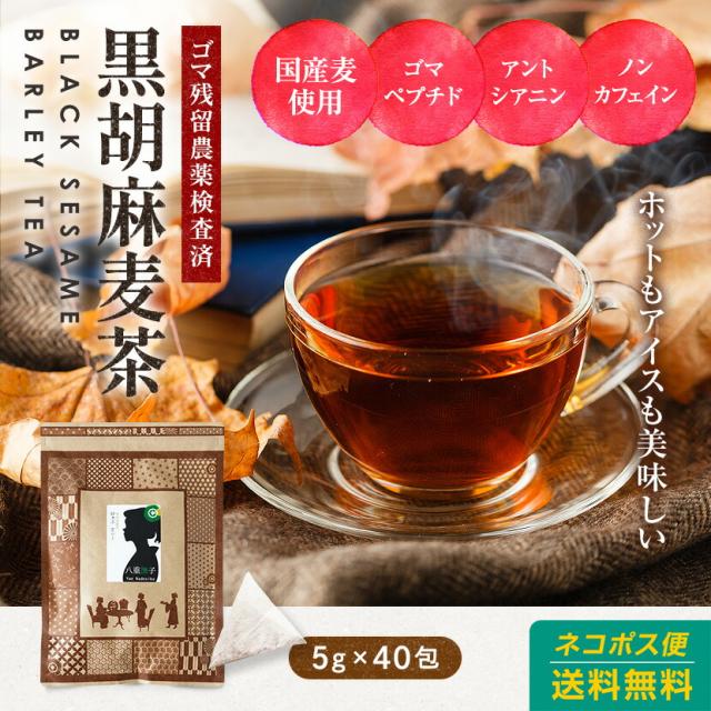 黒胡麻麦茶 ティーパック バッグ 200g(5g×40包)入り 黒ごま ゴマ 麦茶 送料無料 ゴマペプチド アントシアニン ゴマリグナン ノンカフェイン 日本茶