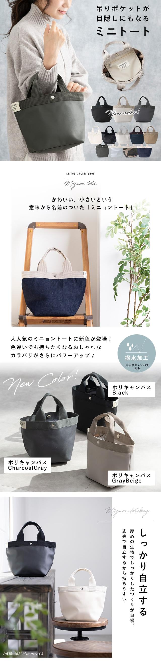 丈夫なしっかりした生地で自立するミニョンミニトートに新色が登場!
