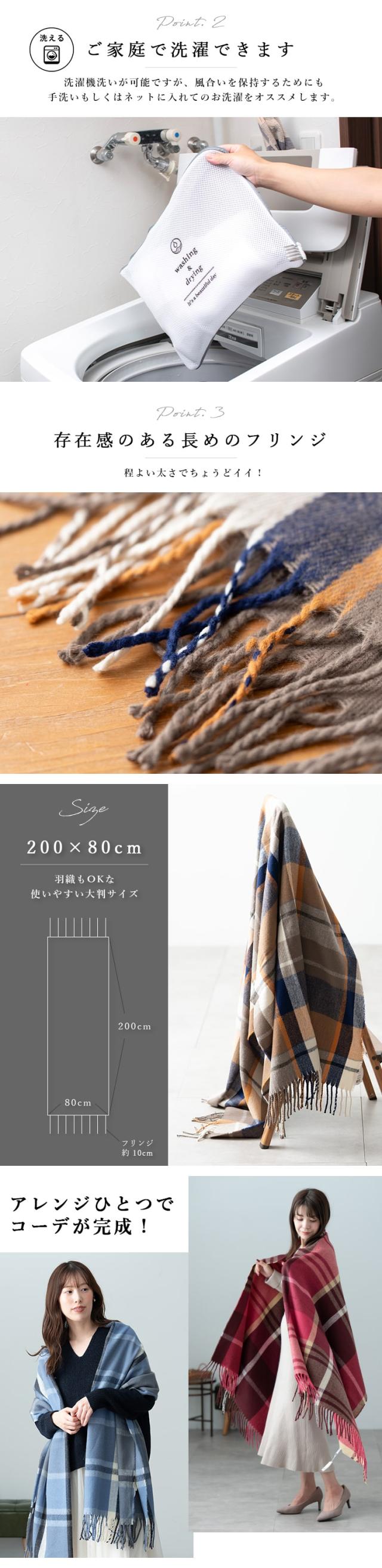 200×80cmの大判サイズなので、カーデ代わりに羽織ったり