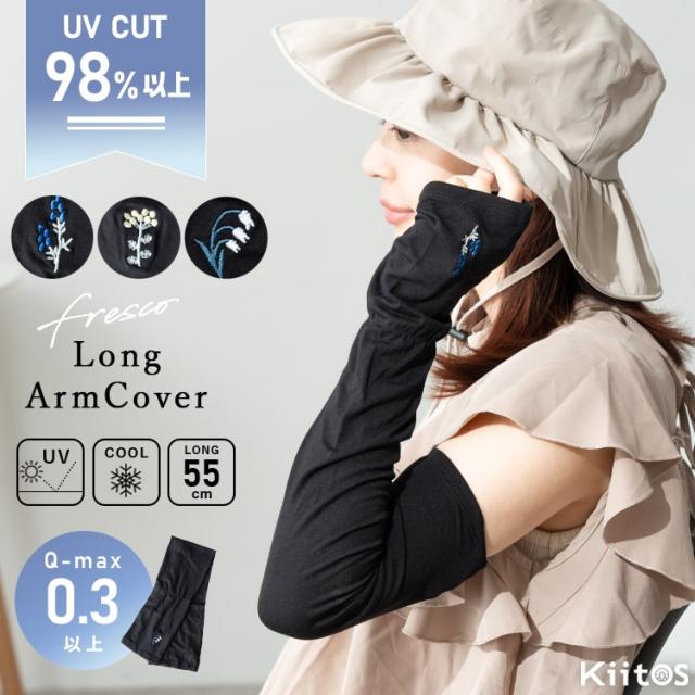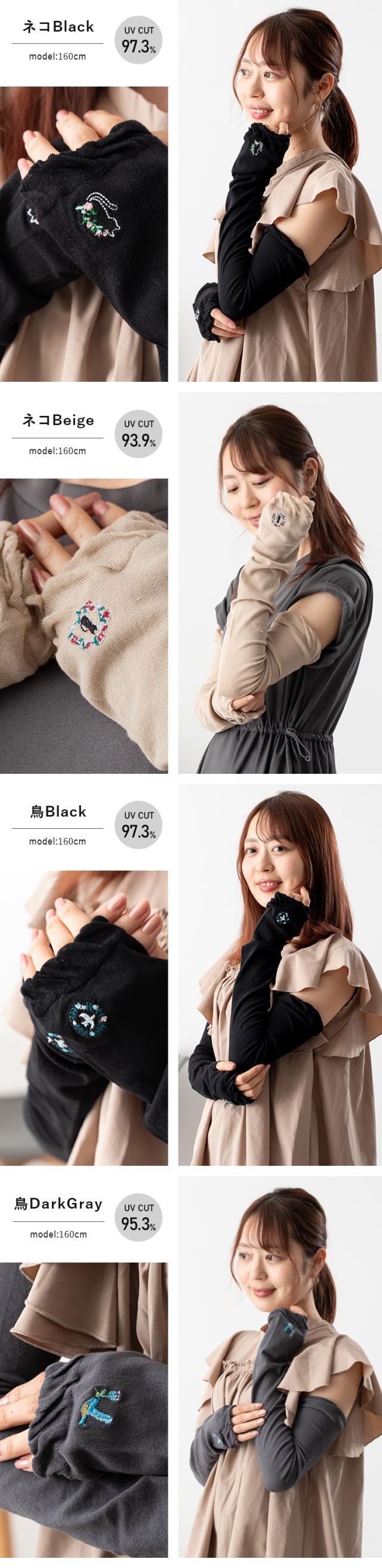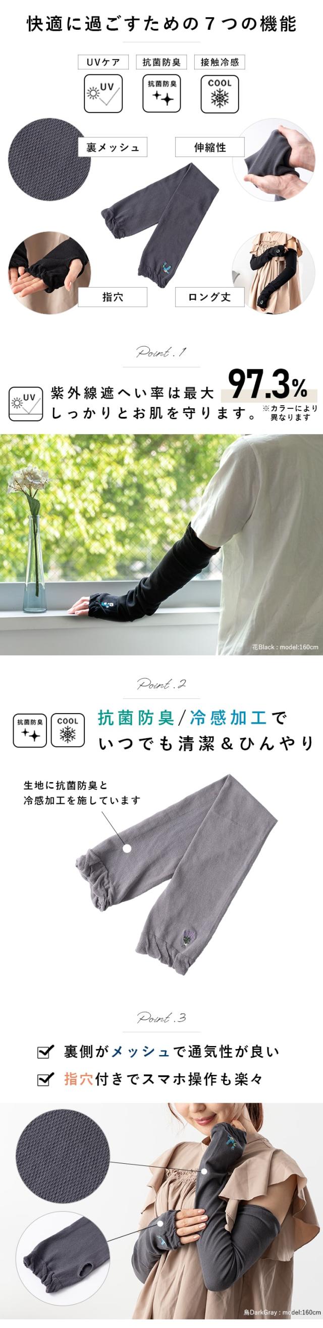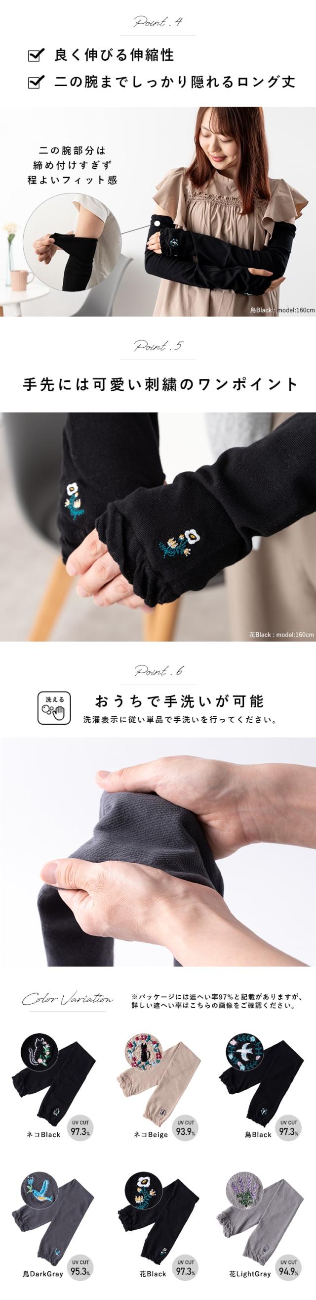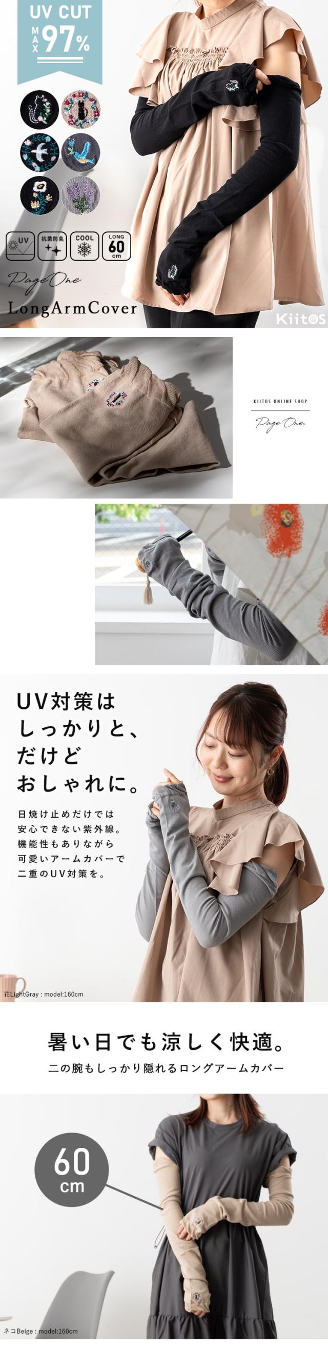 アームカバー uv ロング レディース かわいい おしゃれ 指出し 指穴 紫外線対策 UV手袋 綿 メッシュ 冷感加工 抗菌防臭 暑さ対策 軽量 紫外線遮へい率最大99% ネコ 猫 花柄 刺繍 事務 日焼け タトゥー 隠し 肘まで隠れる 60cm