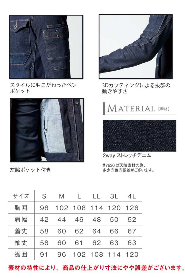 アイズフロンティア 2WAYストレッチ3Dワークジャケット 7630 デニム作業服