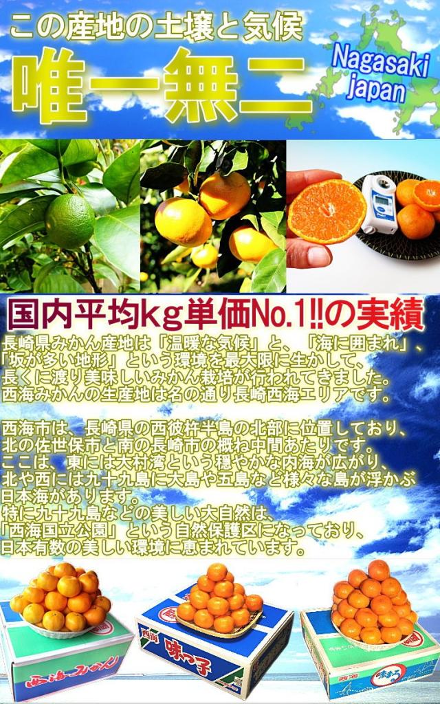 JAながさき西海のブランド果物である「西海みかん」の中でも、限られた農園で育てた糖度13度・酸度1%の果実のみが味っ子として販売することが出来ます。